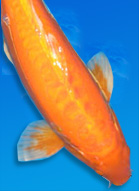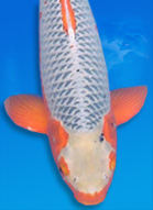 Asagi are fully scaled, nonmetallic fish with a long history. Some pond owners see them as unrefined, dull, and not proper koi at all. Certainly they are an acquired taste, far removed from the brilliantly tri colored modern Showa or the flashy koi grouped in Hikariutsuri. But their quiet elegance serves as a counterpart to their more exotic pond mates and they also have the potential to grow very large. Probably the most common of the Japanese koi. Ideally, the back of an Asagi should be evenly covered in scales that are pale blue at the spot where they enter the skin, but are a darker blue as they grow out. The sharper the definition between these two shades, the more impressive the koi will look. |