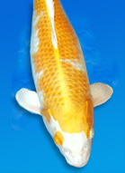 Hariwake are derived from Ogon or Ogon Matsuba lineage and display two metallic colors - a platinum base overlaid with either yellow-gold (Yamabuki) or orange (Orenji) markings. These immensely bright and showy koi, much loved be beginners, are relatively easy to produce. The Doitsu versions are particularly popular. Ideally Hariwake should have clear platinum heads, although if the second color intrudes it is not a disaster. The nicest examples show a lot of metallic white on the body, but others have only small areas of this platinum skin. As in Hikarimono, the scales should convey a three-dimentional impression. |