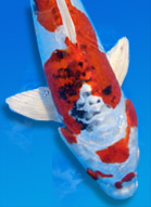 Metallic Showa are the result of crossing Showa and Utsurimono with Ogon. These koi breeds have become rare since they were first introduced and now are often underrepresented at shows for a few reasons. First, subtle appreciation of the finer points of koi is spreading from Japan to other parts of the world, and serious hobbyists are moving away from the flashier varieties to the more original, classic style koi. Second, while the metallic luster of Hikariutsuri is a plus, it has a tendency to tone down hi and sumi, so although these koi sparkle in the pond, their patterning is not always clear-cut or deep in color. This makes koi that overcome this potential drawback very valuable, and efforts have indeed been made to improve the overall quality of Hikariutsuri by back-crossing to their original, nonmetallic half of the partnership. |