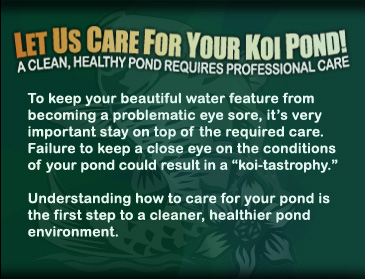If your pond is new or old, large or small, North County Ponds is trained in a variety of pond care services including regular pond maintenance, on-call pond services, pond clean-outs, complete filter system installs, pond water treatments, system cleanings, pond sealing, koi medicating, koi and fish care, algae control, aquatic plant care, and all other aspects of pond and lake management. Call North County Ponds at 760-710-1632 for questions, pricing info, or to schedule a free pond consultation. |