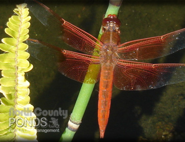 Bright, beautiful, curious insects that magically hover over pond water. They are harmless to the pond. Their larvae thrive in the muckier areas of the pond. |