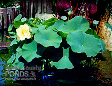Water Lotus are typically everyone’s favorite aquatic plant. They arguably produce some of the pond’s most breathtaking blooms. Lotus’ prefer shallow water depths, just a few inches above the lip of the pot. They thrive in water temps above 70ºF and require lots of sunlight and fertilizer. ***Click here for examples of water lotus pond plants. |